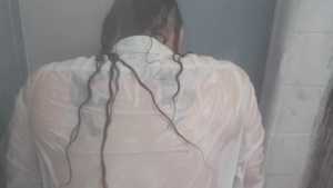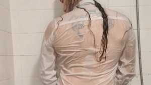 My shower times, I love to notice my clothes wet, sticky to my body and transparent. Often when I get home I get dressed in the shower to relax.