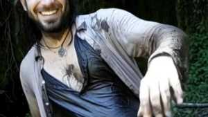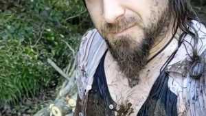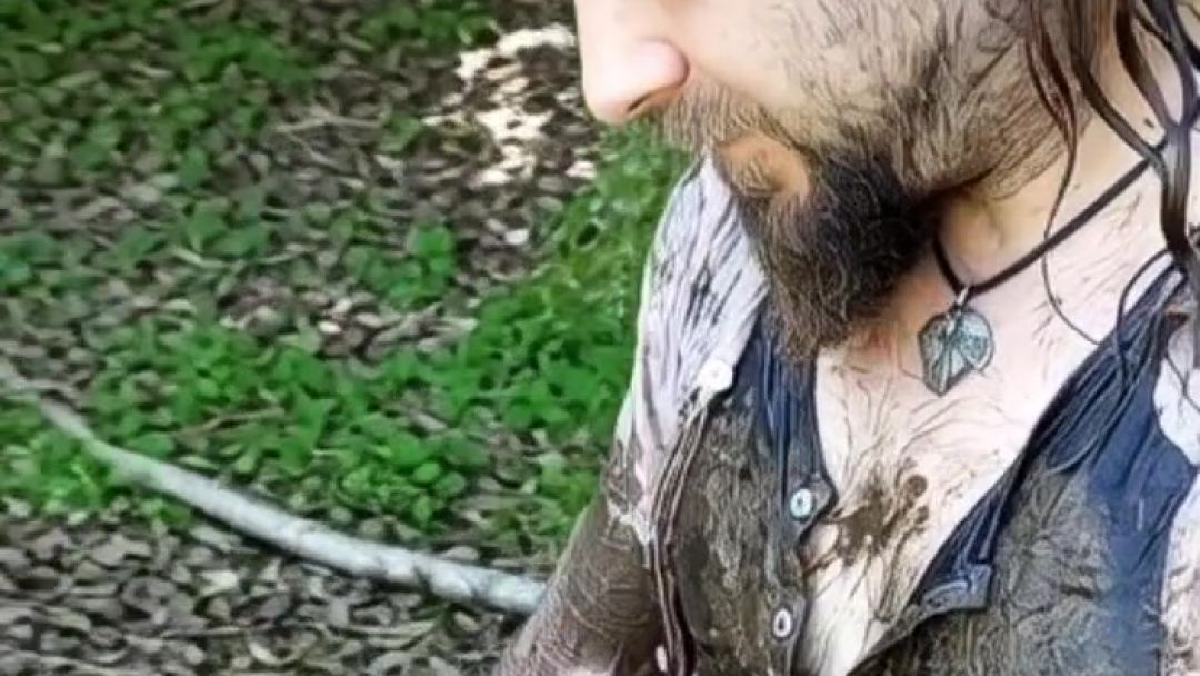In a forest, where I find a very dirty mud puddle, I roll around in it with my clothes on.